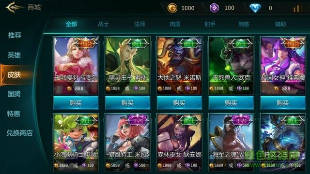 部分英雄皮膚開放金幣,點(diǎn)券購買。