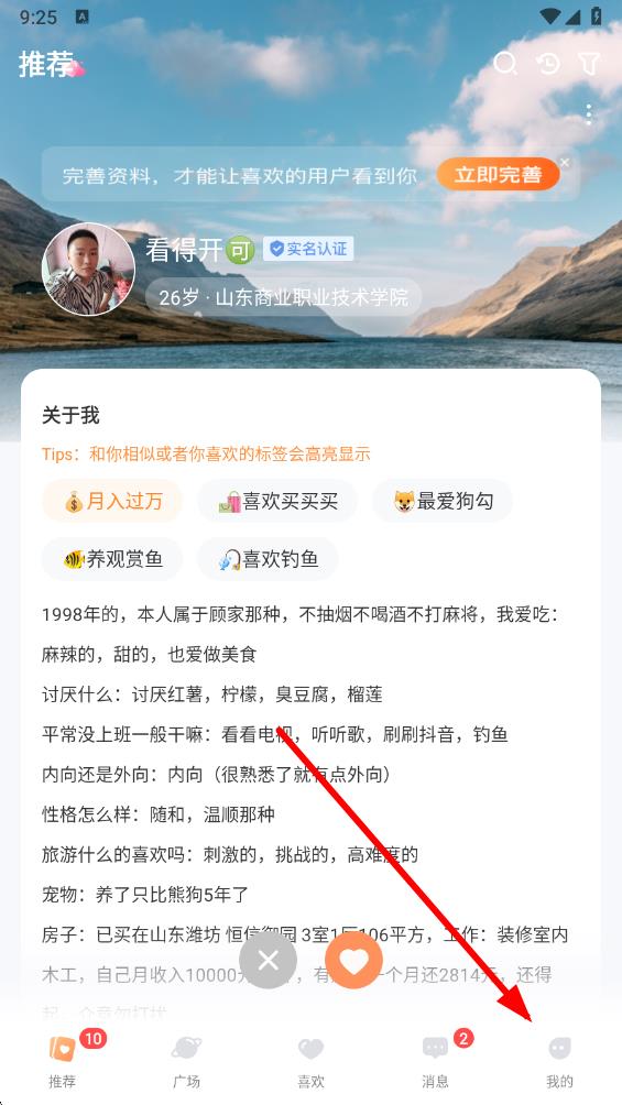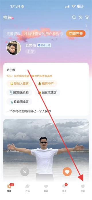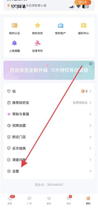 1、打開百合網(wǎng)應(yīng)用,點(diǎn)擊底部導(dǎo)航欄最右側(cè)我的進(jìn)入個(gè)人頁面。
