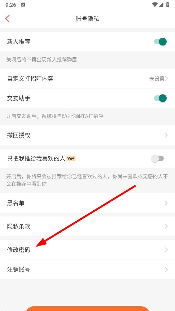 4、進(jìn)入賬號(hào)隱私頁面,點(diǎn)擊修改密碼的選項(xiàng)。