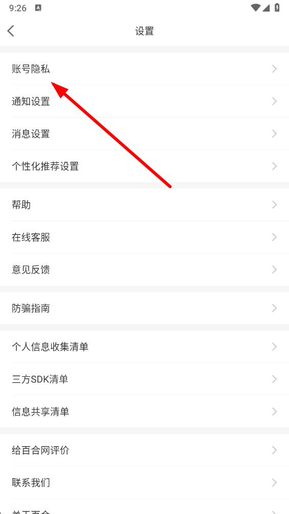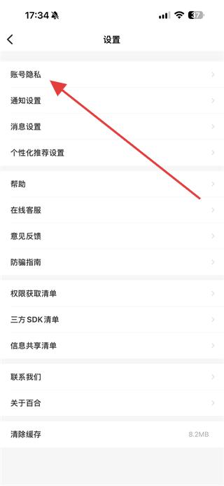 3、在設(shè)置界面中,點(diǎn)擊賬號(hào)隱私選項(xiàng)進(jìn)入相關(guān)頁面。