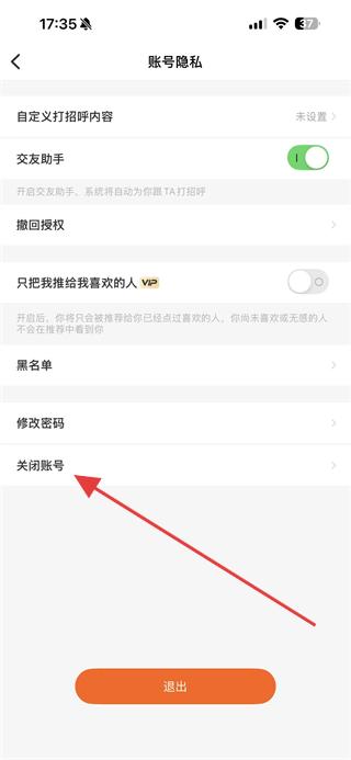 4、在賬號(hào)隱私頁面里,找到關(guān)閉賬號(hào)選項(xiàng),按照后續(xù)提示操作即可注銷賬號(hào)。