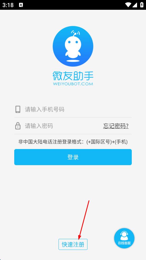 1、進(jìn)入后點(diǎn)擊下方快速注冊,進(jìn)入到賬號的注冊頁面。