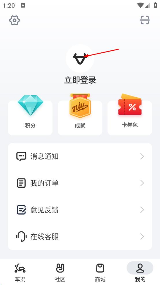 1、打開(kāi)小牛電動(dòng)APP,點(diǎn)擊頁(yè)面右下角“我的”選項(xiàng)。
