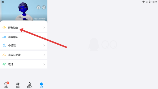 1、在qq的動態(tài)頁面中,點擊好友動態(tài)選項,進入空間查看。