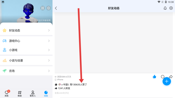 2、在好友動態(tài)下方可以查看有多少人點贊,點擊該區(qū)域查看點贊詳情。