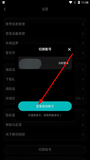 3、進(jìn)入設(shè)置頁面后,下滑找到「切換賬號(hào)」按鈕并點(diǎn)擊;在彈出的窗口中,選擇「登錄其他賬號(hào)」。