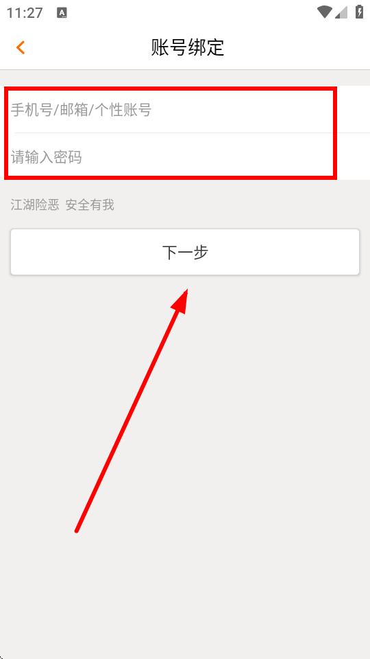 4、在賬號綁定界面輸入手機號/郵箱/個性賬號及對應的密碼,點擊下一步,按后續(xù)提示完成新賬號綁定操作。