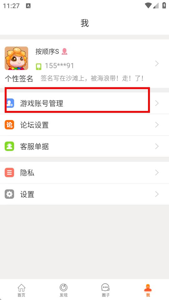 2、在個人界面中找到游戲賬號管理選項,點擊進入賬號列表界面。