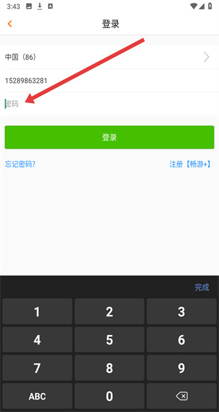 4、在填寫好手機號后,繼續(xù)在下方填寫登錄密碼,填寫好后即可點擊登錄按鈕,完成登錄。