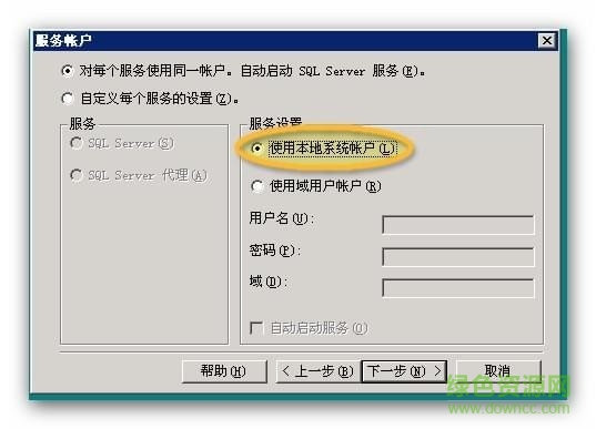 選擇"使用本地系統(tǒng)賬戶",如下圖: