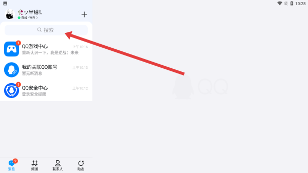 1、在qq的主頁面中,可以通過點擊搜索框進(jìn)行搜索操作。