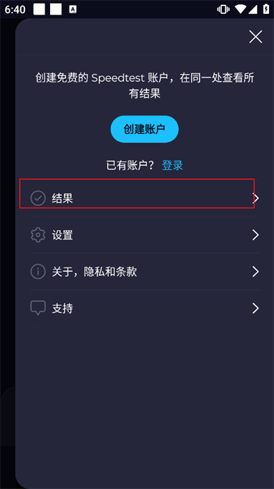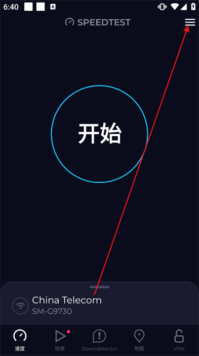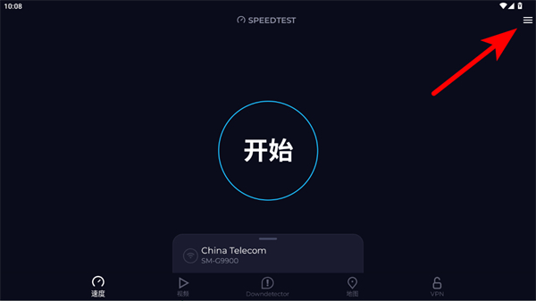 1、打開Speedtest應(yīng)用,點擊右上角的菜單圖標(biāo)。