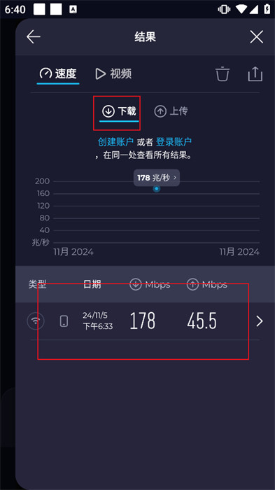 3、這里能看到目前下載的速度,并且能看到檢測的時間和網(wǎng)絡(luò),十分的詳細(xì);