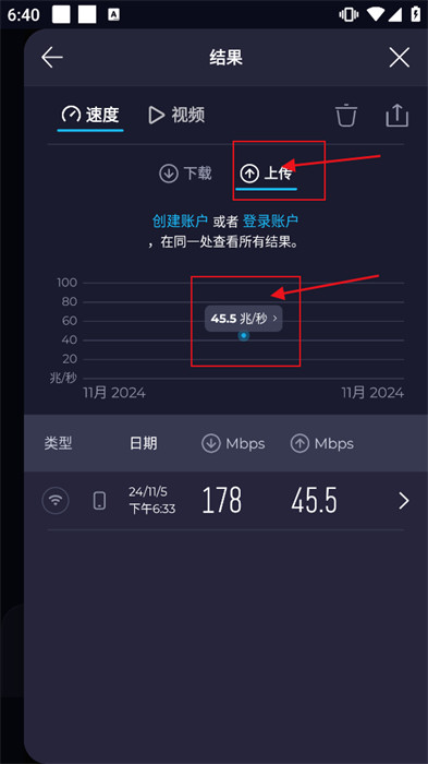 4、切換到【上傳】也對上傳的速度做出了詳細(xì)的介紹,如下圖所示;