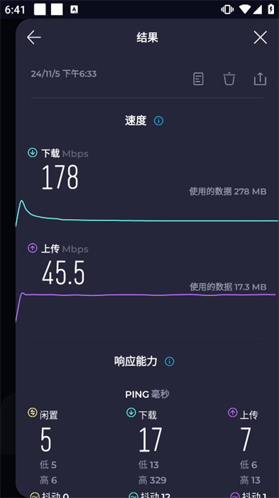 speedtest官方正版是一款全球知名網(wǎng)絡(luò)測速工具,憑借全球上萬測試服務(wù)器與精準(zhǔn)算法,30秒內(nèi)即可完成下載,上傳速度、Ping值、抖動及丟包率的檢測,誤差率低至±3%,結(jié)果專業(yè)可靠,它提供實時速度波動圖表、歷史測試記錄對比,還整合Downdetector功能,可快速判斷是網(wǎng)絡(luò)本身還是第三方服務(wù)出問題,輕松排查卡頓、延遲等隱患。