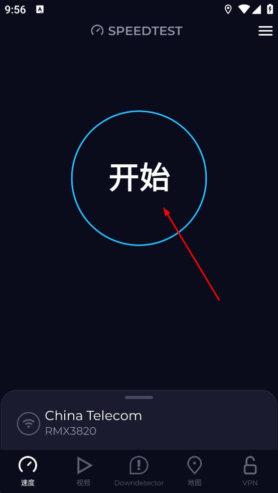 4、在Speedtest主界面,點擊開始,即可啟動網(wǎng)絡(luò)速度測試,查看網(wǎng)絡(luò)的相關(guān)速度數(shù)據(jù)。
