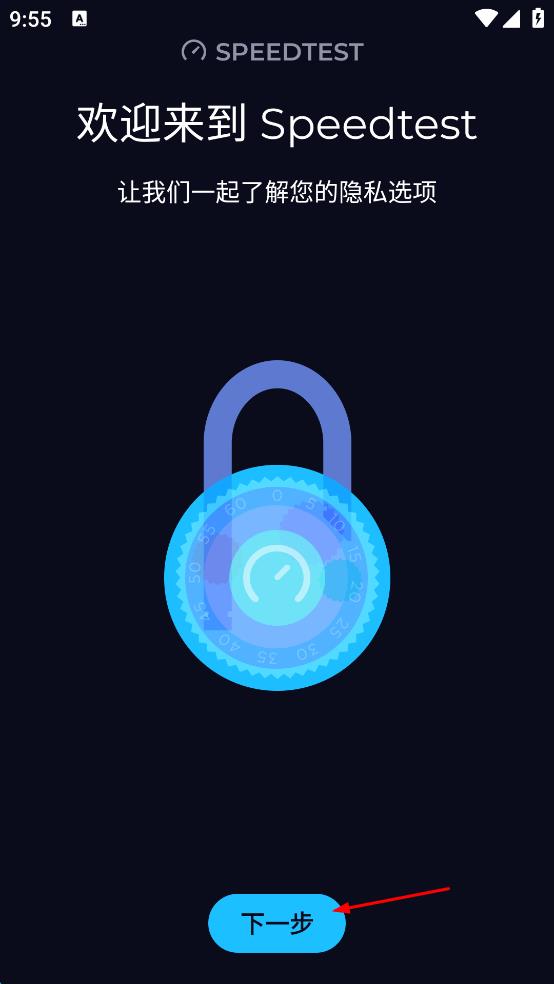 1、打開Speedtest,進(jìn)入歡迎頁面,點擊下一步,進(jìn)入Speedtest準(zhǔn)確性說明頁面。
