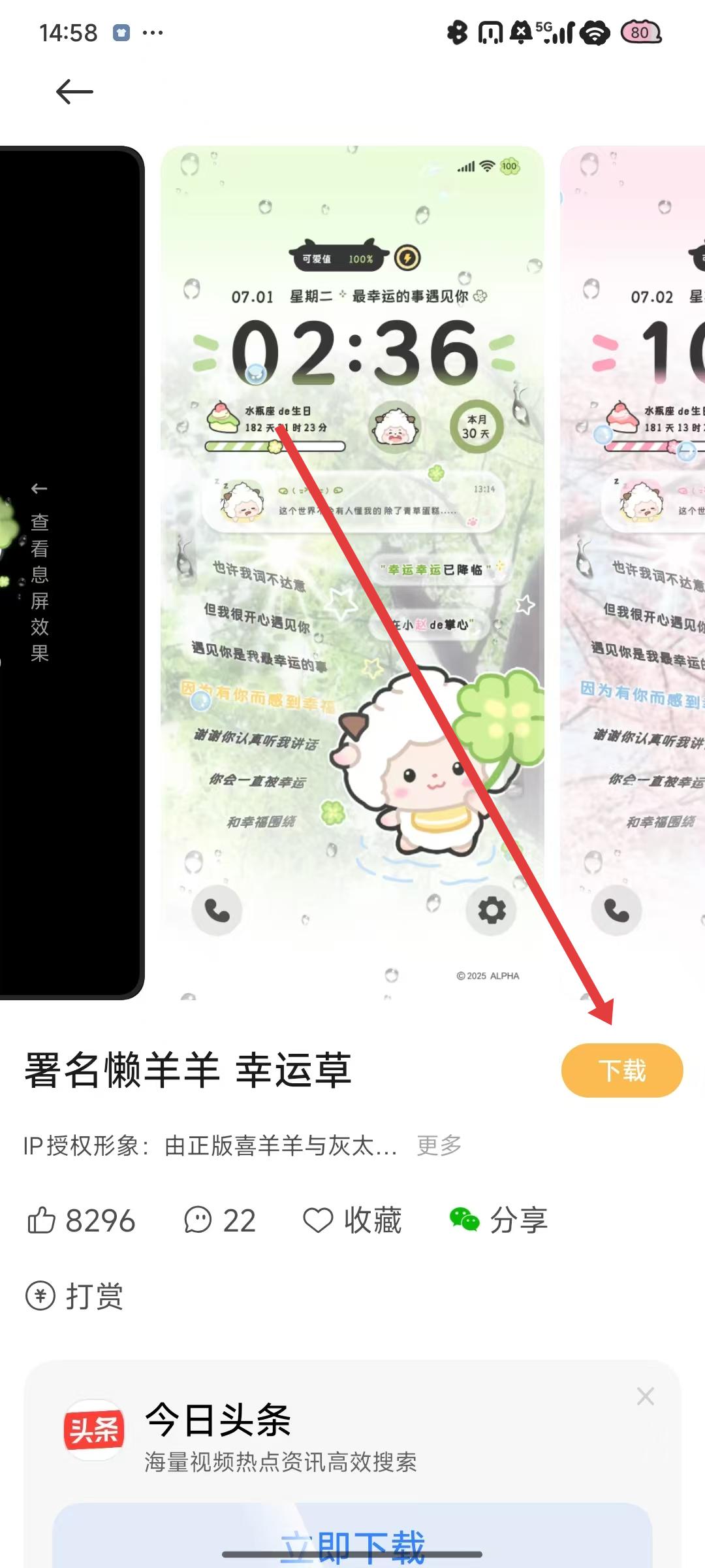 2、點(diǎn)擊進(jìn)入心儀主題的詳情頁(yè)面,查看主題的具體樣式,確認(rèn)喜歡后點(diǎn)擊頁(yè)面右下角的下載按鈕。