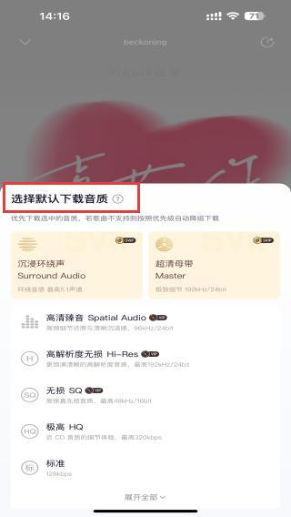 4、下載前,了解下載的音質(zhì)后,即可開始下載音樂。