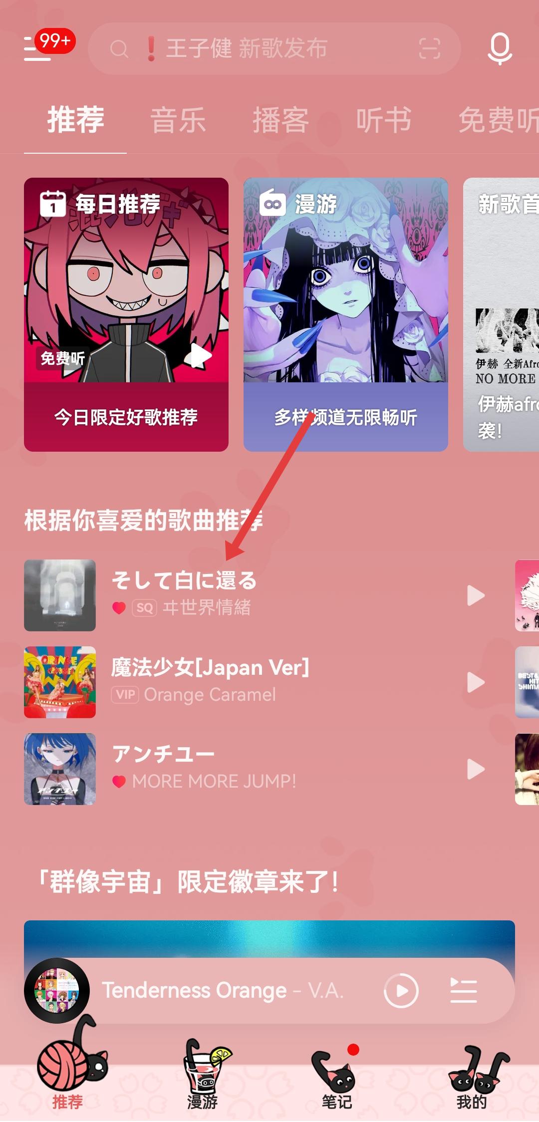 1、打開網(wǎng)易云音樂APP,在推薦頁(yè)找到目標(biāo)歌曲如そして白に還る,點(diǎn)擊進(jìn)入播放頁(yè)面。