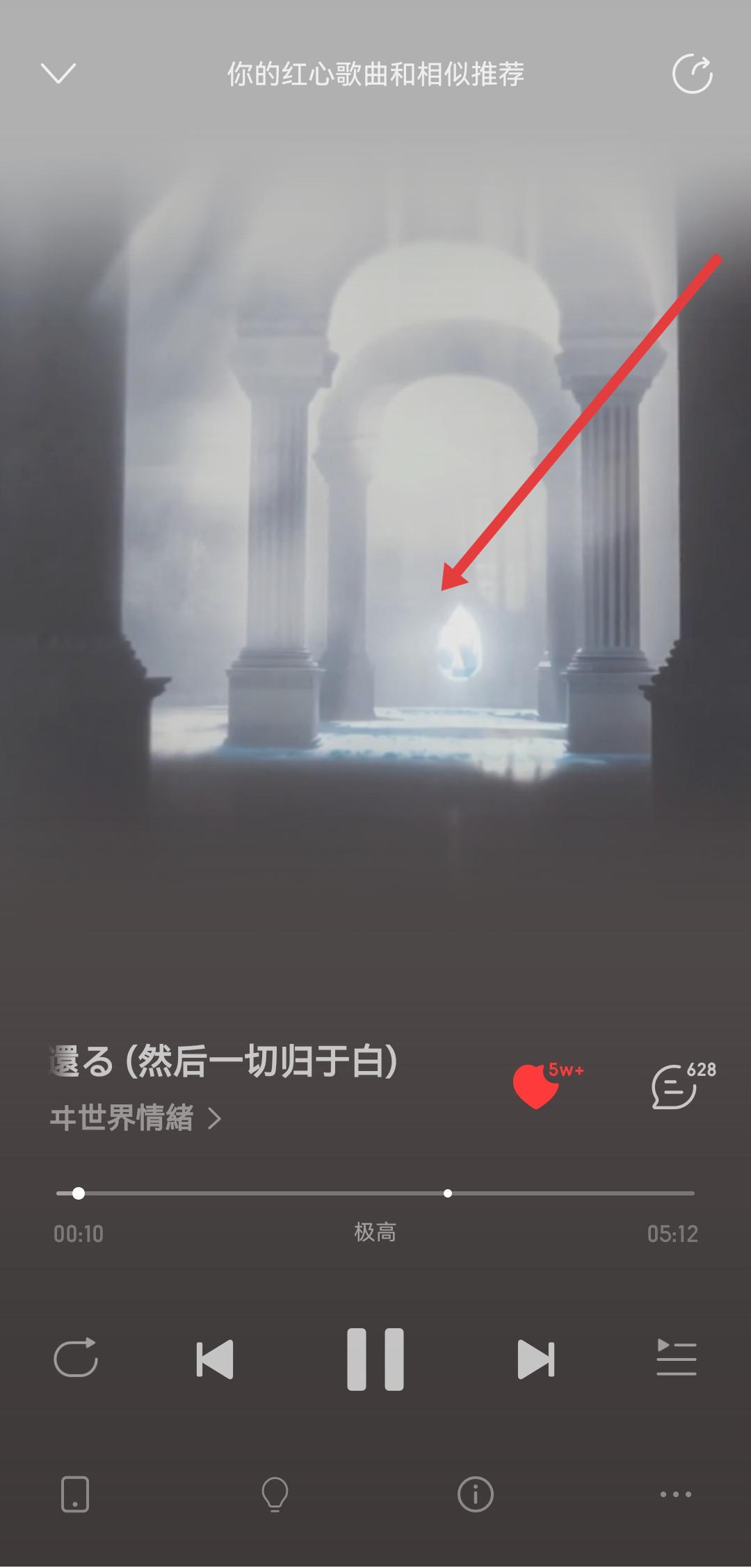 2、在歌曲播放的頁(yè)面,可以點(diǎn)擊歌曲封面的任意位置,進(jìn)入到歌曲歌詞的詳情頁(yè)。
