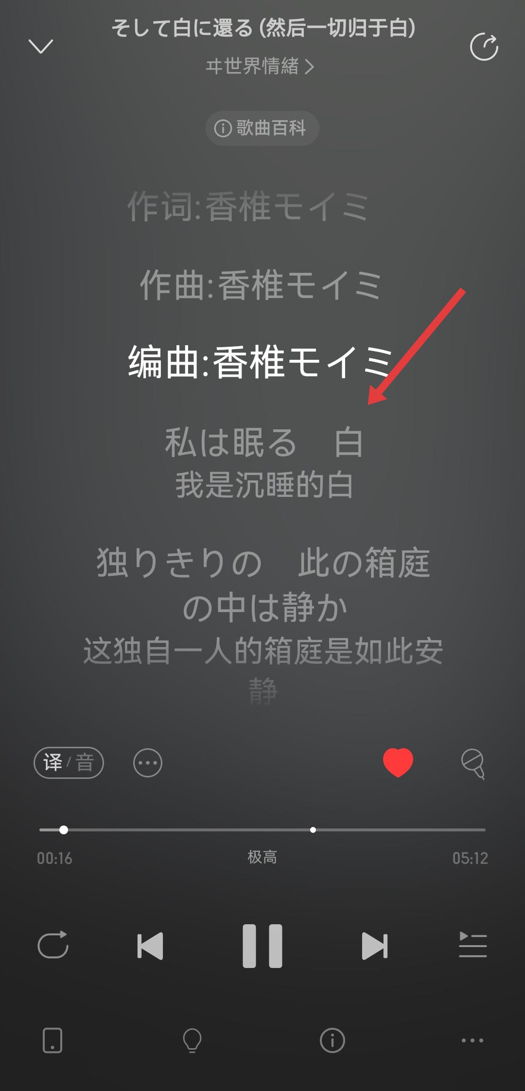 3、在該歌詞的詳情頁(yè)中,我們可以查看完整的中日文歌詞如我是沉睡的白等內(nèi)容。