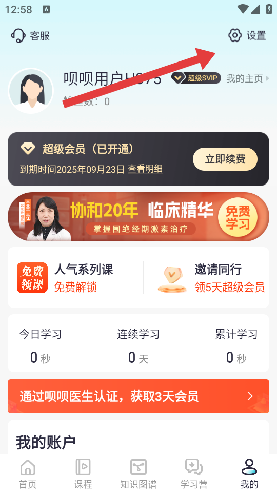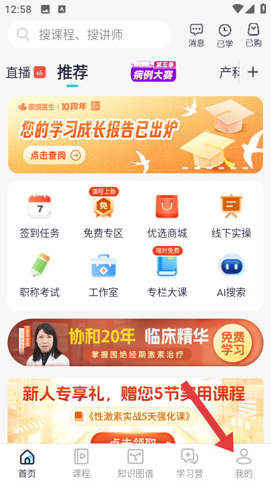 1、打開唄唄醫(yī)生APP,點擊底部課程,進入課程頁面。