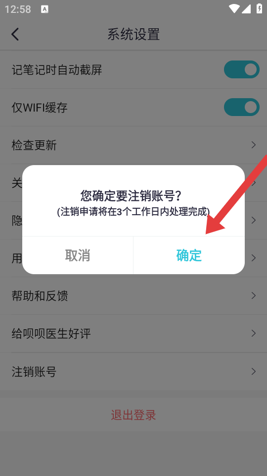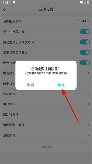 3、在系統(tǒng)設(shè)置界面,點擊注銷賬號的選項,彈出注銷確認彈窗。