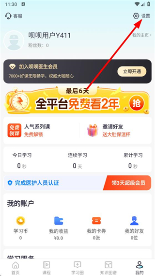 2、在我的頁面,需要點擊右上角設(shè)置的圖標(biāo),進入系統(tǒng)設(shè)置界面。