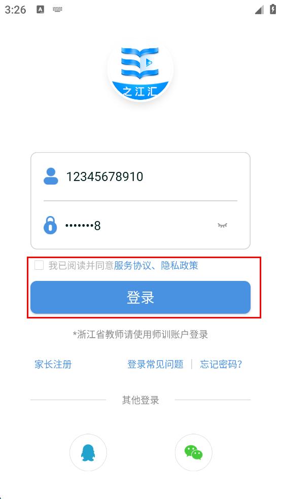 4、勾選“我已閱讀并同意服務(wù)協(xié)議、隱私政策”,點(diǎn)擊“登錄”按鈕完成登錄。