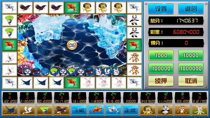 2、玩家進入游戲之后,會有30秒的進行各種動物的押分,每個動物的押分比例隨著系統(tǒng)的變化而變化。