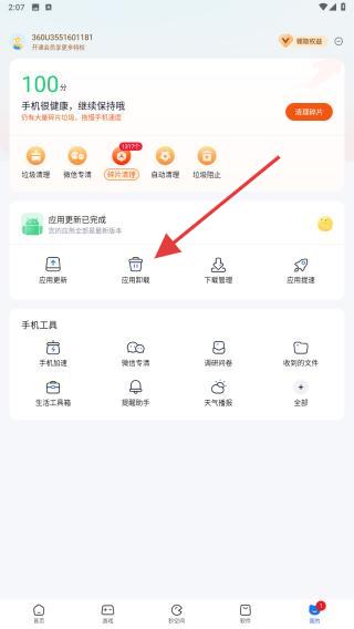 2、在個(gè)人中心的頁(yè)面內(nèi),點(diǎn)擊應(yīng)用卸載的功能按鈕。