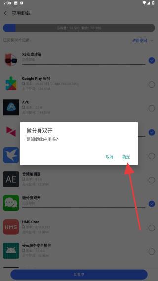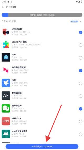 3、在此頁(yè)面內(nèi),勾選要卸載的應(yīng)用,再點(diǎn)擊一鍵卸載的按鈕。
