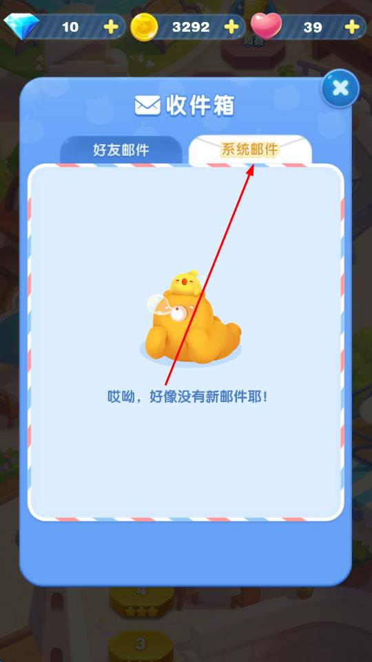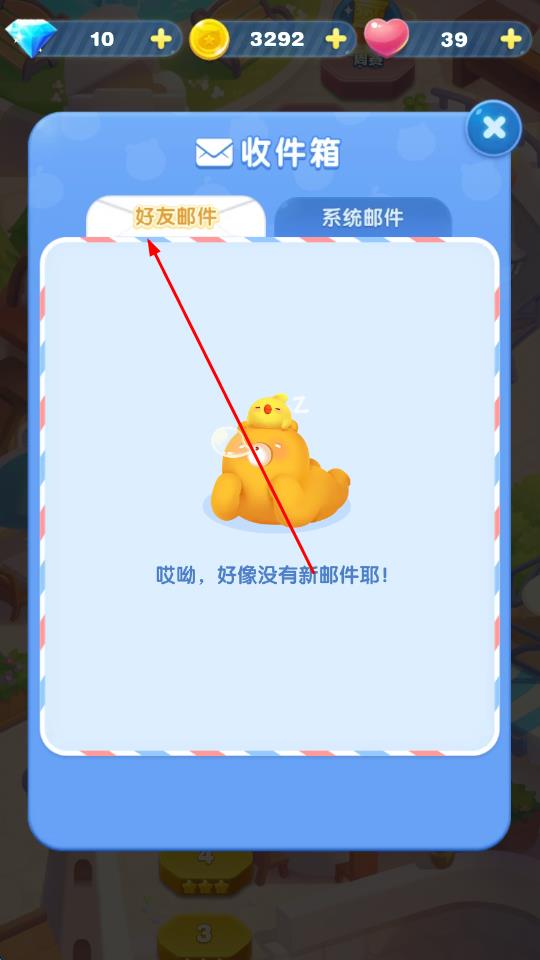3、點擊好友郵件選項卡,能查看好友發(fā)送的郵件,比如贈送的愛心等信息。