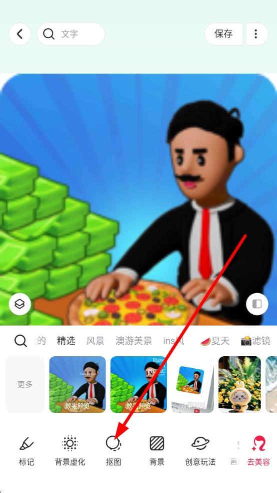 2、在編輯頁底部,點擊摳圖功能,啟動摳圖操作流程。