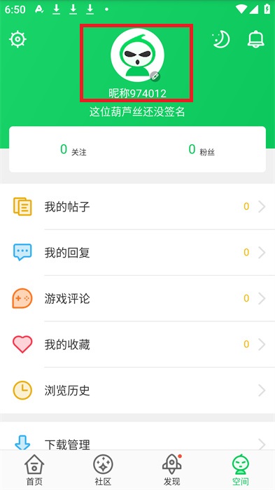 2、在該個人主頁空間界面,點擊上方的【頭像】進入到個人信息界面;