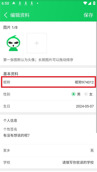 4、在對應的界面中,我們就可以看到【昵稱】點擊就可以去進行修改;
