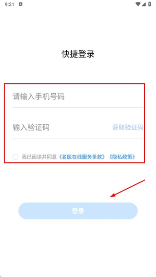 3、輸入手機(jī)號、驗(yàn)證碼,勾選同意服務(wù)條款和隱私政策,點(diǎn)擊登錄,完成注冊。