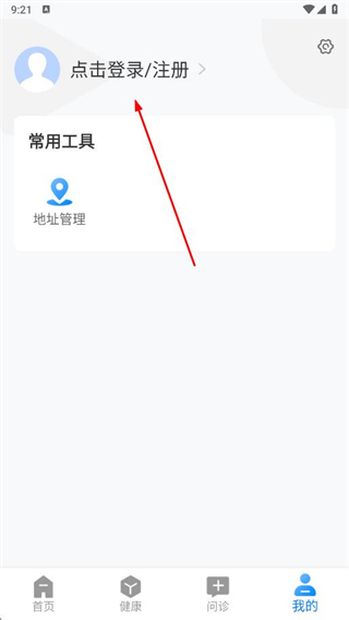 2、在我的頁面中,點(diǎn)擊頭像區(qū)域的點(diǎn)擊登錄/注冊選項(xiàng)。