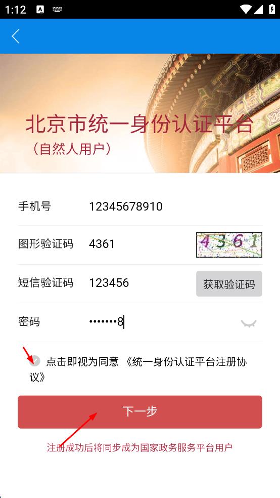 4、勾選點擊即視為同意統(tǒng)一身份認證平臺注冊協(xié)議,點擊“下一步”,按照后續(xù)提示完成注冊。