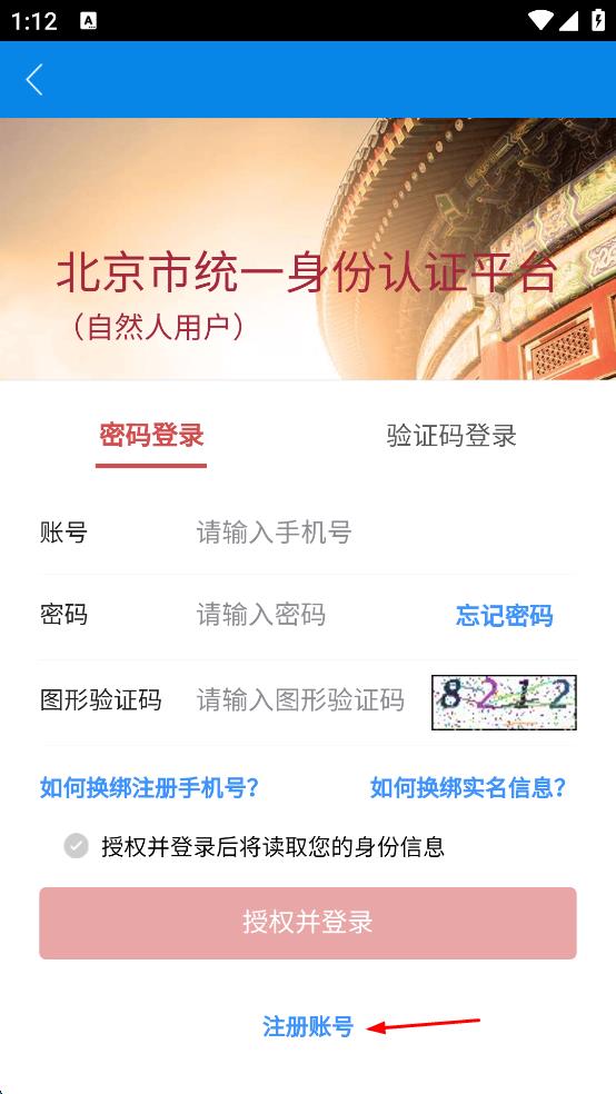 2、在登錄頁面,點擊下方“注冊賬號”,進入北京市統(tǒng)一身份認證平臺注冊界面。