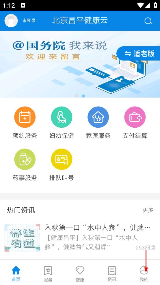 1、打開北京昌平健康云,點擊頁面右下角“我的”,進入登錄頁面。