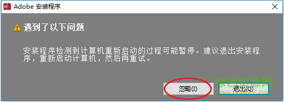2.開始安裝后會(huì)出現(xiàn)如下圖這樣的窗口,點(diǎn)擊“忽略”按鈕,會(huì)顯示“正在初始化安裝程序”,等一下就好了