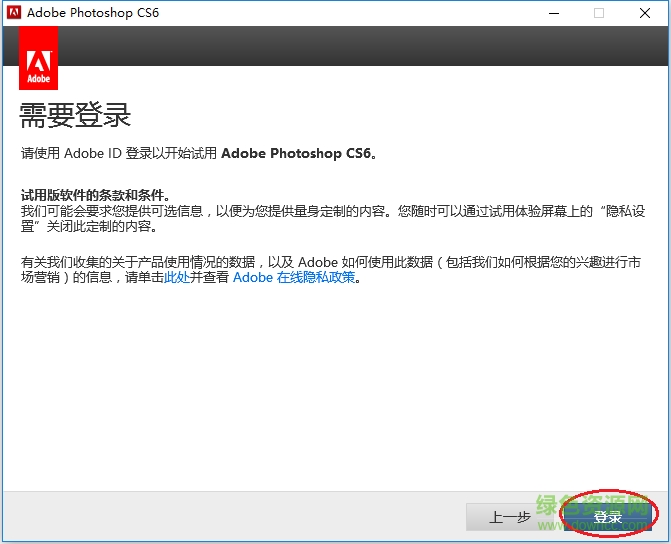 5.教程開始之前,不是讓大家斷網(wǎng)么!如果沒斷網(wǎng)的話,點(diǎn)完“接受”之后就會(huì)出現(xiàn)下圖這樣的提示,要我們登錄Adobe ID,如果你有的話可以直接登錄,沒有的話可以在本頁(yè)面創(chuàng)建。由于我們斷網(wǎng)了,就不用登錄了,會(huì)自動(dòng)跳過(guò)這一步。