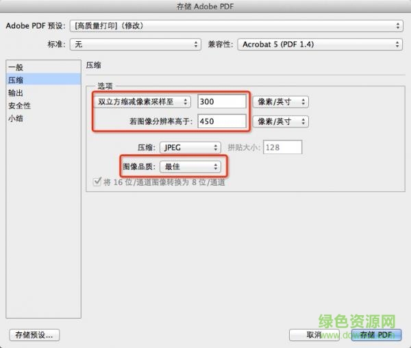 4、您可以根據(jù)您的需求進(jìn)行修改PDF的參數(shù),您可以點(diǎn)擊左側(cè)的“壓縮”選項(xiàng),然后在右側(cè)進(jìn)行修改相應(yīng)的屬性,修改完成后點(diǎn)擊【存儲(chǔ)PDF】即可。