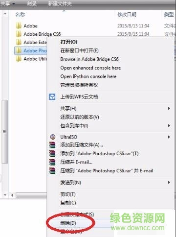 3、打開PhotoShop CS6安裝位置界面中,點(diǎn)擊鼠標(biāo)右鍵選“刪除”選項(xiàng)。