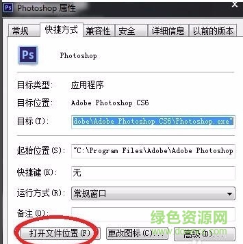 2、在PhotoShop CS6屬性界面中,點(diǎn)擊左下角的“打開文件位置”按鈕。