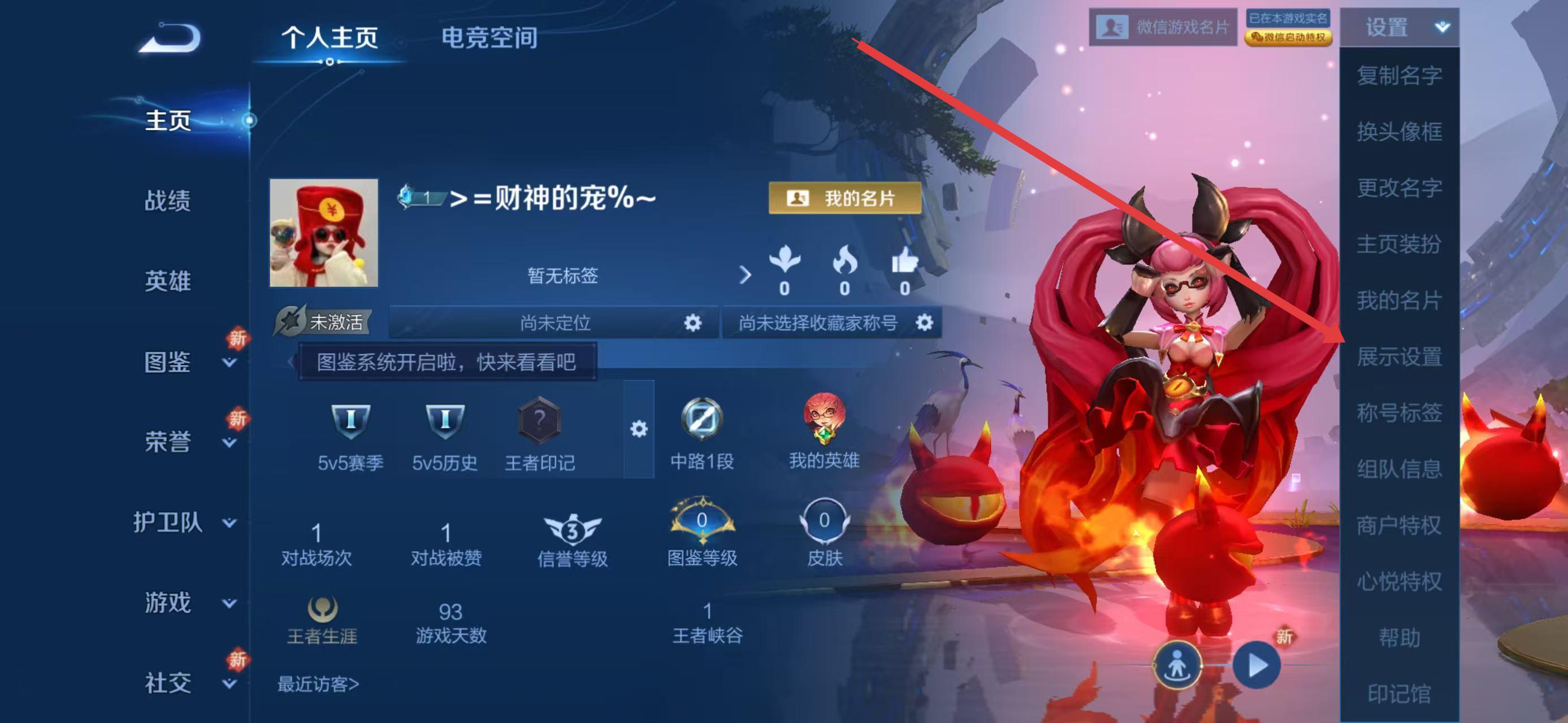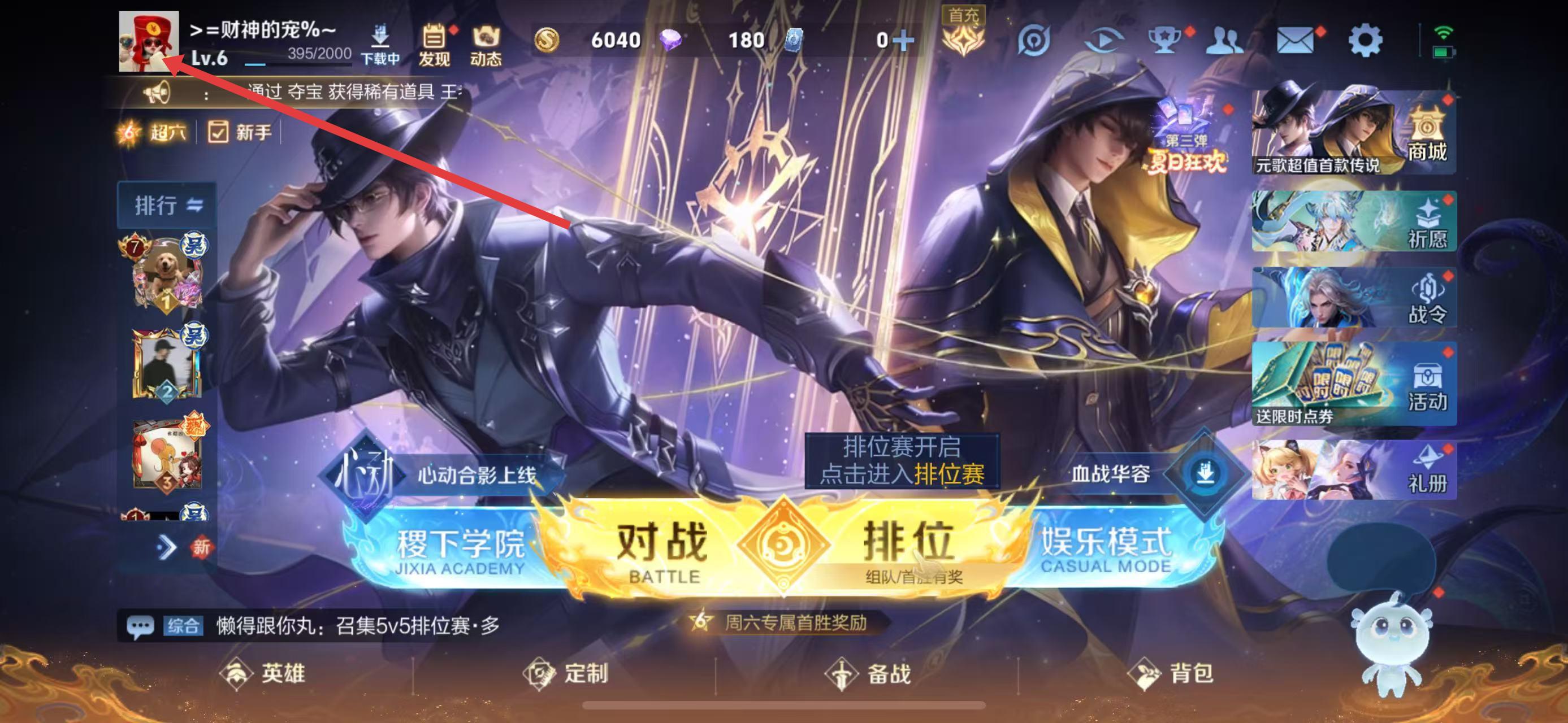 1、打開(kāi)王者榮耀游戲,進(jìn)入主界面后點(diǎn)擊左上角的頭像,進(jìn)入個(gè)人主頁(yè)界面。