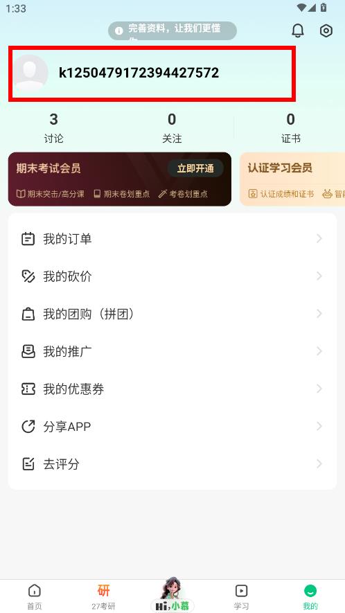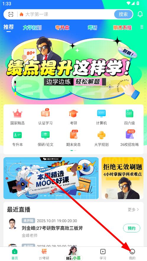 1、打開中國(guó)大學(xué)moocAPP,點(diǎn)擊首頁右下角我的進(jìn)入個(gè)人界面。