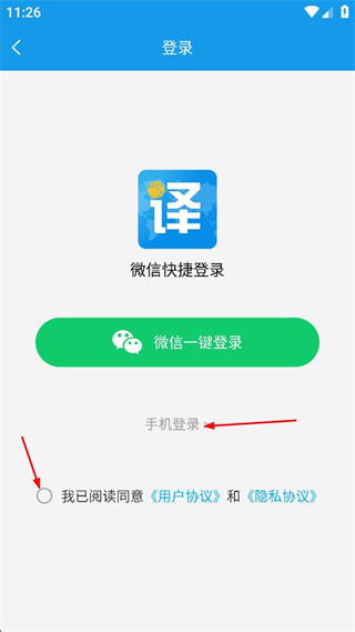 3、在登錄選擇界面勾選已閱讀同意用戶協(xié)議和隱私協(xié)議,點(diǎn)擊手機(jī)登錄。